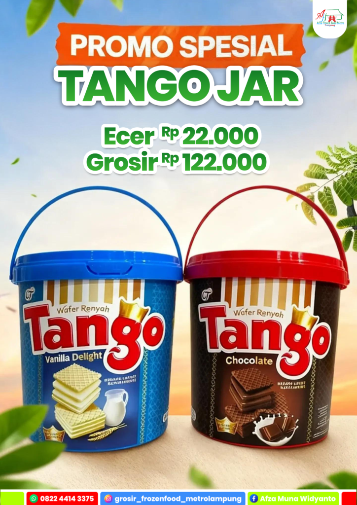 Spesial Promo Tango Jar Lagi cari camilan buat lebaran?? Ini dia yang lagi promo spesial! Nikmati renyahnya wafer dari Tango Jar dengan pilihan rasa favorit: 🤍 Vanilla Delight 🤎 Chocolate 🔥 Harga Promo: * Ecer: Rp22.000 * Grosir: Rp122.000 Cocok banget buat: ✔️ Stok camilan di rumah ✔️ Suguhan tamu ✔️ Dijual lagi menjelang Lebaran Buruan sebelum kehabisan! Promo berlaku selama stok masih ada ya. AFZA JAYA MANDIRI Jl. Selagai RT 006 RW 003 Kelurahan Iringmulyo Kecamatan Metro Timur Kota Metro, Lampung 34124 Copyright © | All Rights Reserved.